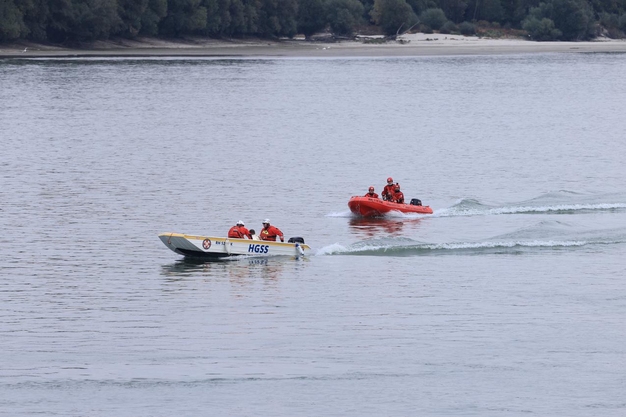 Spasilački tim HGSS-a poziva se na lokaciju. Spasioci koriste ulaz za spust čamaca te s čamcem izvode spašavanje ugroženih osoba. U spašavanju sudjeluje i Društvo podvodnih aktivnosti “Slavonija” koje također rade potragu za nestalima pod vodom. U potragu za nestalim osobama uključuje se i HCK DCK Osječko-baranjske županije koje pretražuje obalni dio nizvodno od pristaništa.
