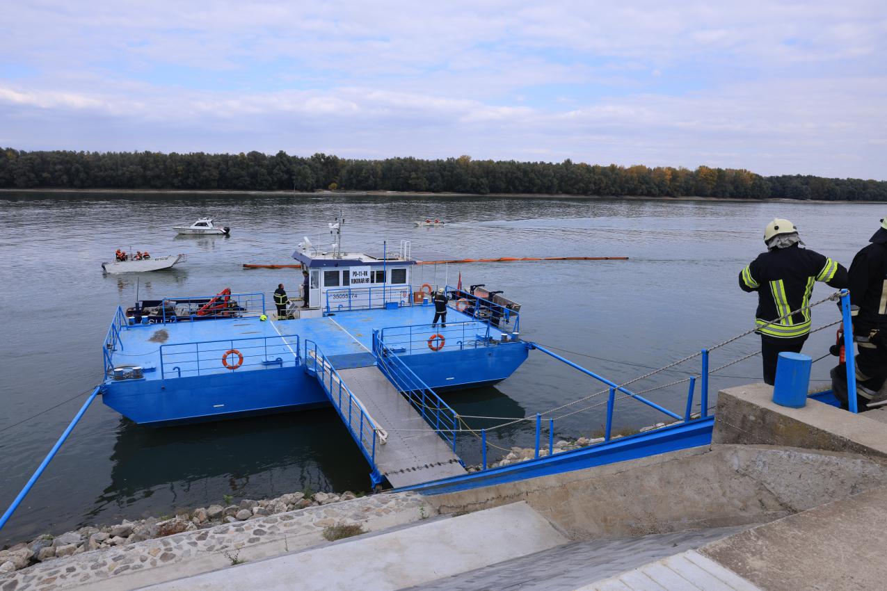 DVD Erdut na ulaz za spust čamaca ulazi s kombi vozilom i vatrogasnim čamcem te spušta čamac u vodu, pristupa preventivnom postavljanju hidrofobnih brana u lancu s ciljem zaustavljanja i prikupljanja eventualnih opasnih tvari koje se uslijed požara i mogućeg potonuća broda mogu proširiti vodotokom. U akciji također sudjeluje i DVD Aljmaš.